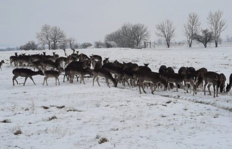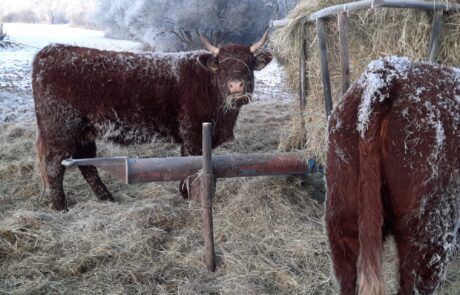 Sowohl das Damwild als auch die Salers-Rinder werden artgerecht gehalten und gefüttert.